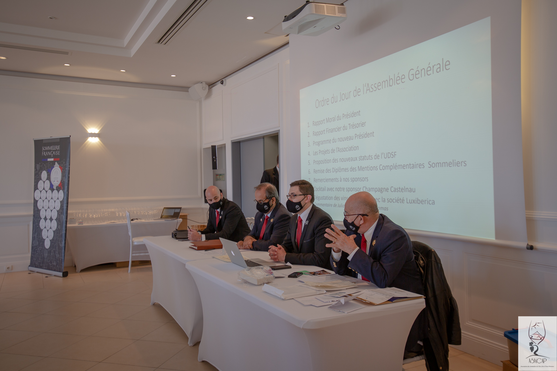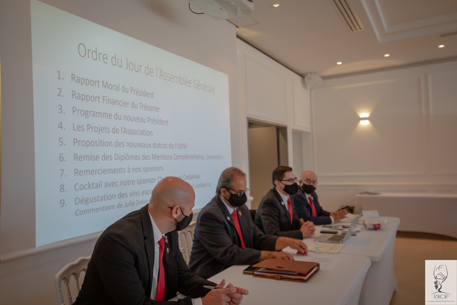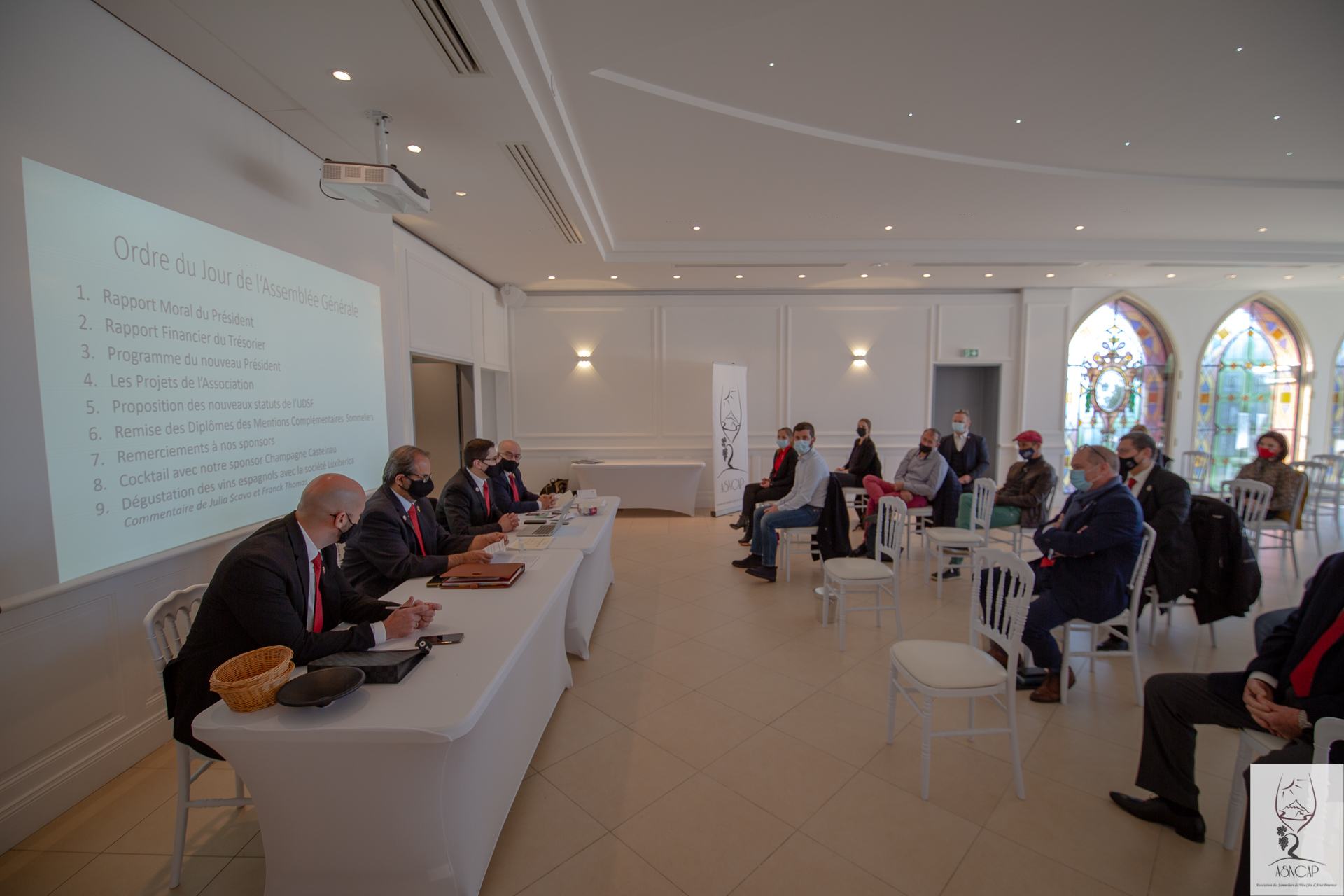 Le rendez-vous annuel de l’association des Sommeliers de Nice Côte d’Azur Provence se déroula à Château de Crémât (Bellet 06 Nice) le Lundi 15 Mars 2021. Une session cyclique toute particulière comme elle vit l’intronisation officielle de son nouveau président M. Florian Guilloteau. La restructuration du bureau constitué de membres en charge individuellement de missions précises et tous choisis pour leurs capacités à fédérer, encadrer, proposer et veiller à la préservation des préceptes fondateurs de l’entité associative ASNCAP. Ces acteurs dynamiques sont aussi chargés de la gestion financière de l’organisation et se doivent d’être à tout instant force de propositions et de projets collectifs, tous axées vers l’univers du vin , des produits du terroir français offrant des accords synergiques et qui fourni un matériau souvent utile à la lecture technique et organique du vin.