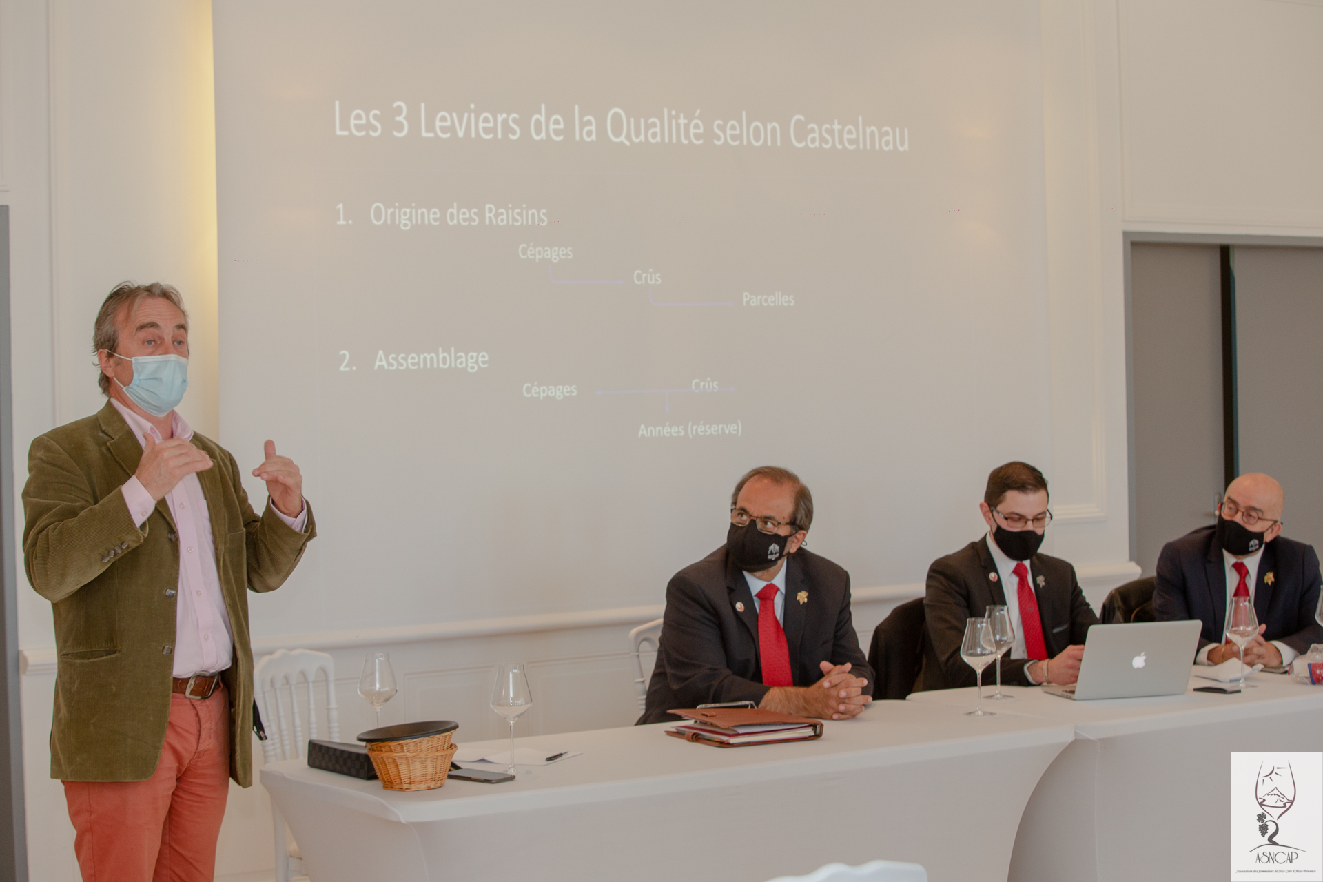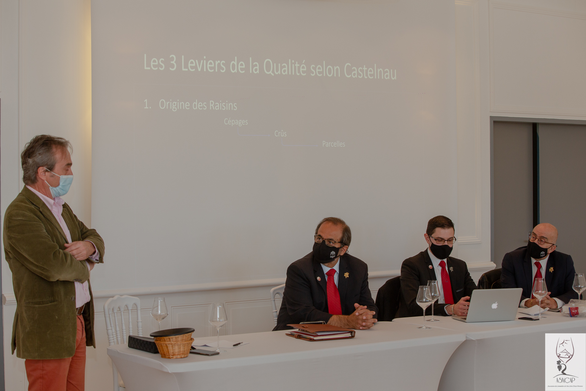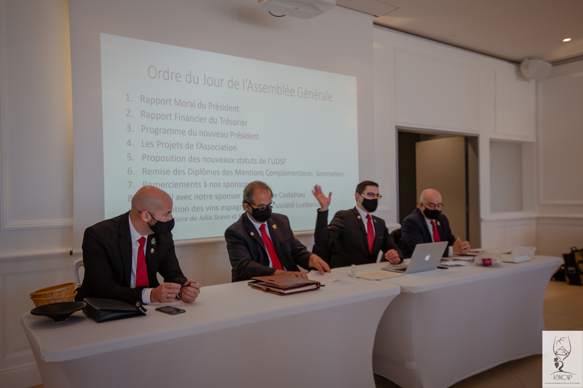 Le rendez-vous annuel de l’association des Sommeliers de Nice Côte d’Azur Provence se déroula à Château de Crémât (Bellet 06 Nice) le Lundi 15 Mars 2021. Une session cyclique toute particulière comme elle vit l’intronisation officielle de son nouveau président M. Florian Guilloteau. La restructuration du bureau constitué de membres en charge individuellement de missions précises et tous choisis pour leurs capacités à fédérer, encadrer, proposer et veiller à la préservation des préceptes fondateurs de l’entité associative ASNCAP. Ces acteurs dynamiques sont aussi chargés de la gestion financière de l’organisation et se doivent d’être à tout instant force de propositions et de projets collectifs, tous axées vers l’univers du vin , des produits du terroir français offrant des accords synergiques et qui fourni un matériau souvent utile à la lecture technique et organique du vin.